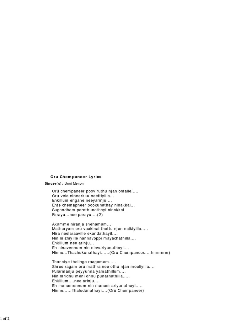 Oru Chempaneer Pooviruthu Lyrics Malayalam : Malayalam lyrics, kollam (quilon), india. Oru Chempaneer Pooviruthu Lyrics Malayalam / Oru chembaneer pooviruthu njan omale watsapp status dream catcher.